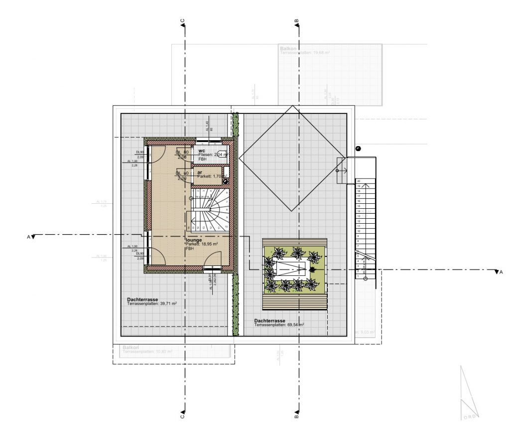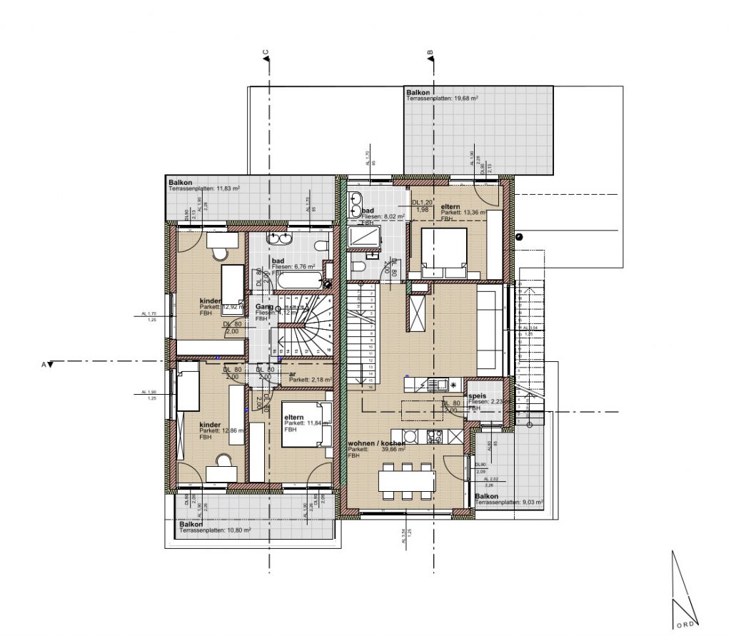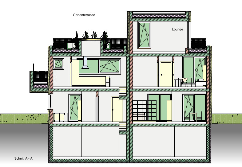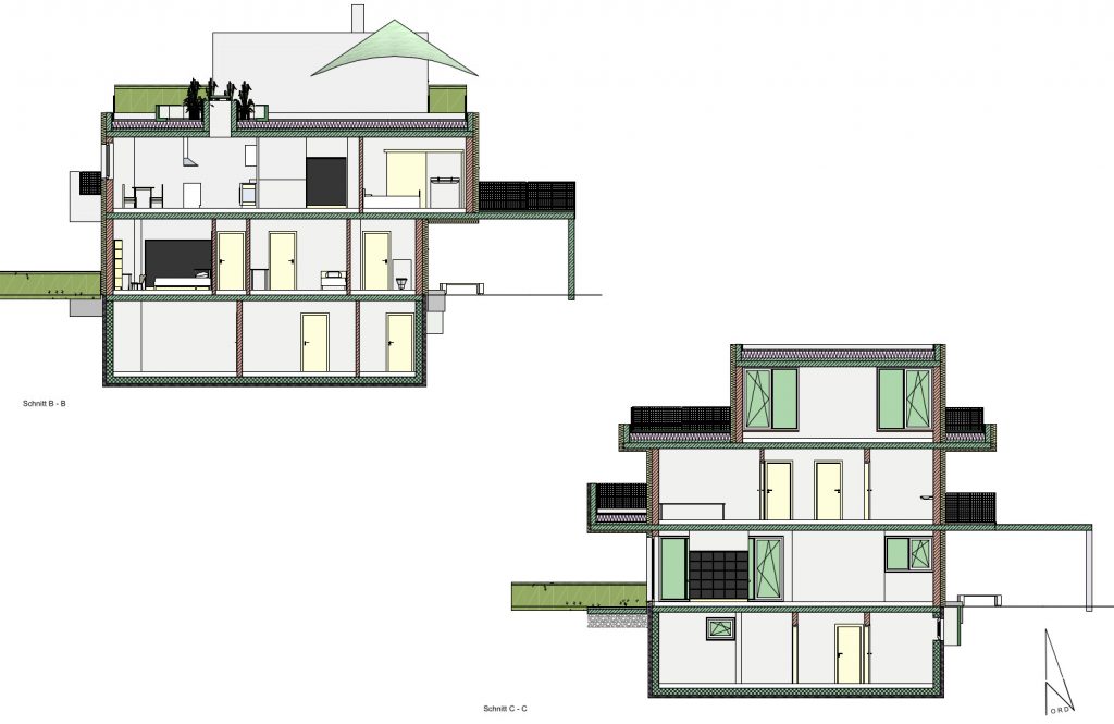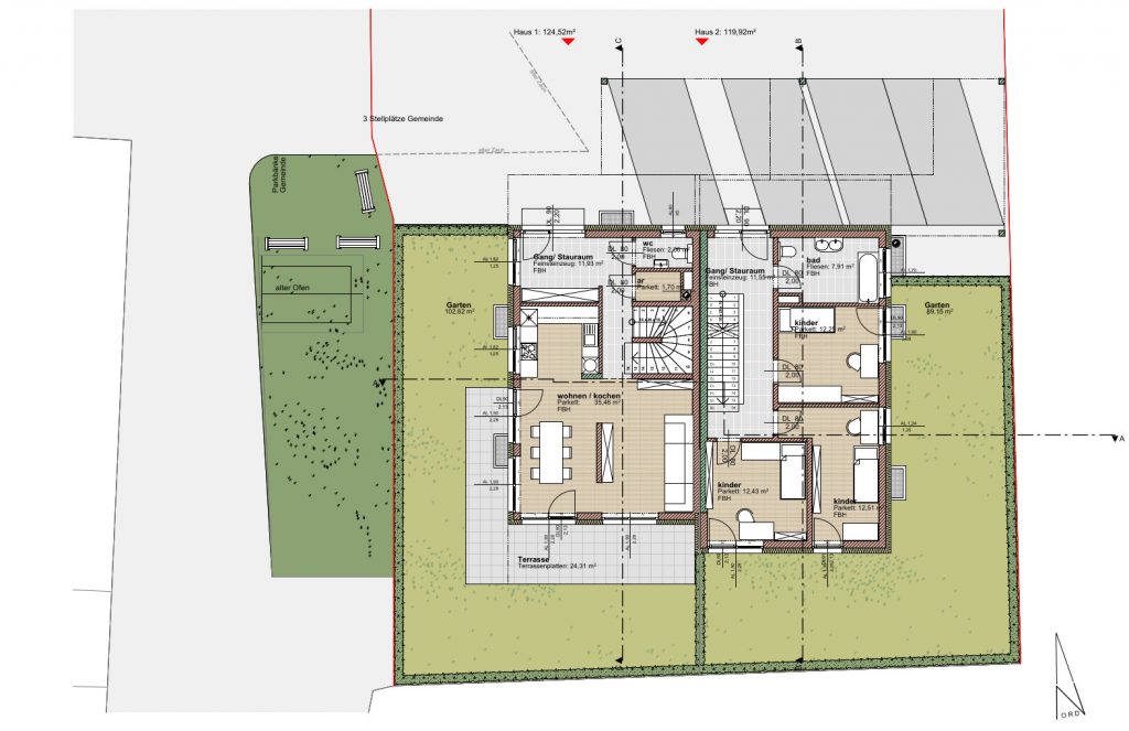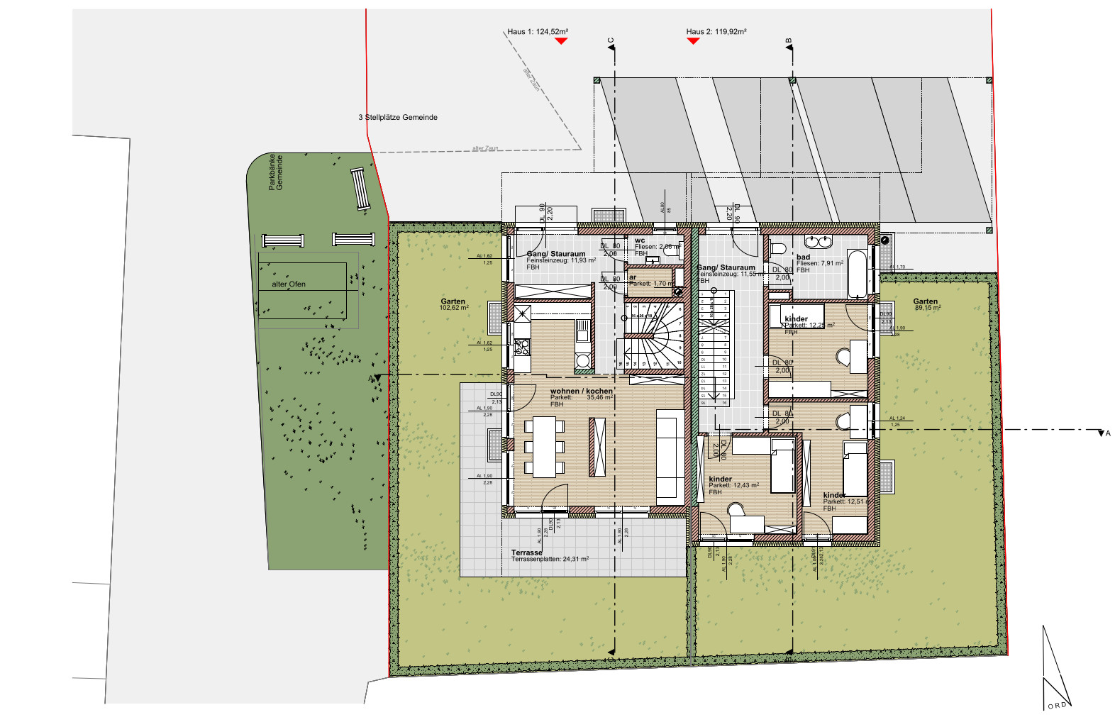 Doppelhaus Natters Studie Entwurf für Marktanalyse; Aufgabenstellung: 2 Varianten, die der Nachfrage angepasst schnell gespiegelt oder dupliziert und getrennt voneinander behördlich einreichbar (Baumassendichte) sind.